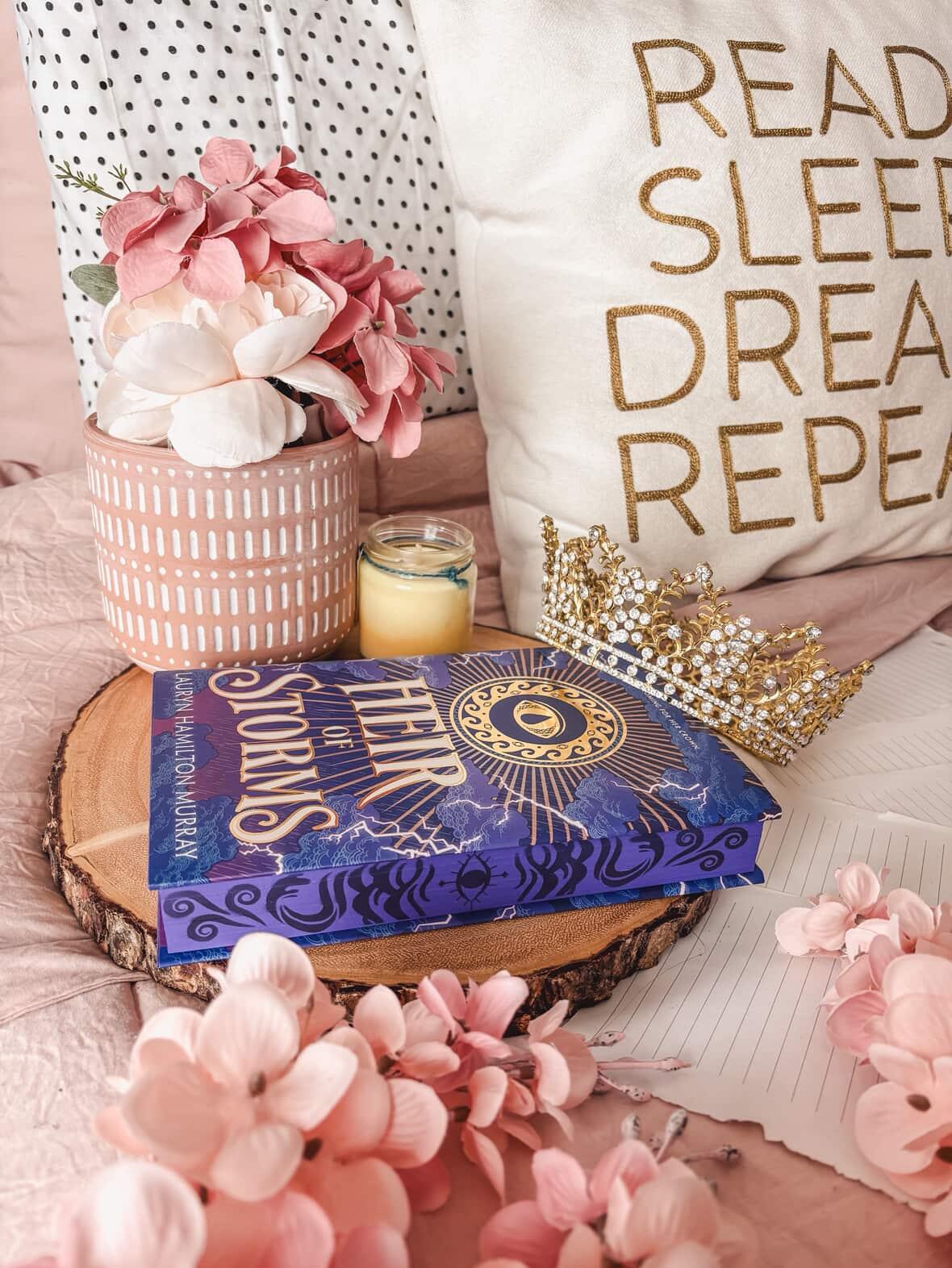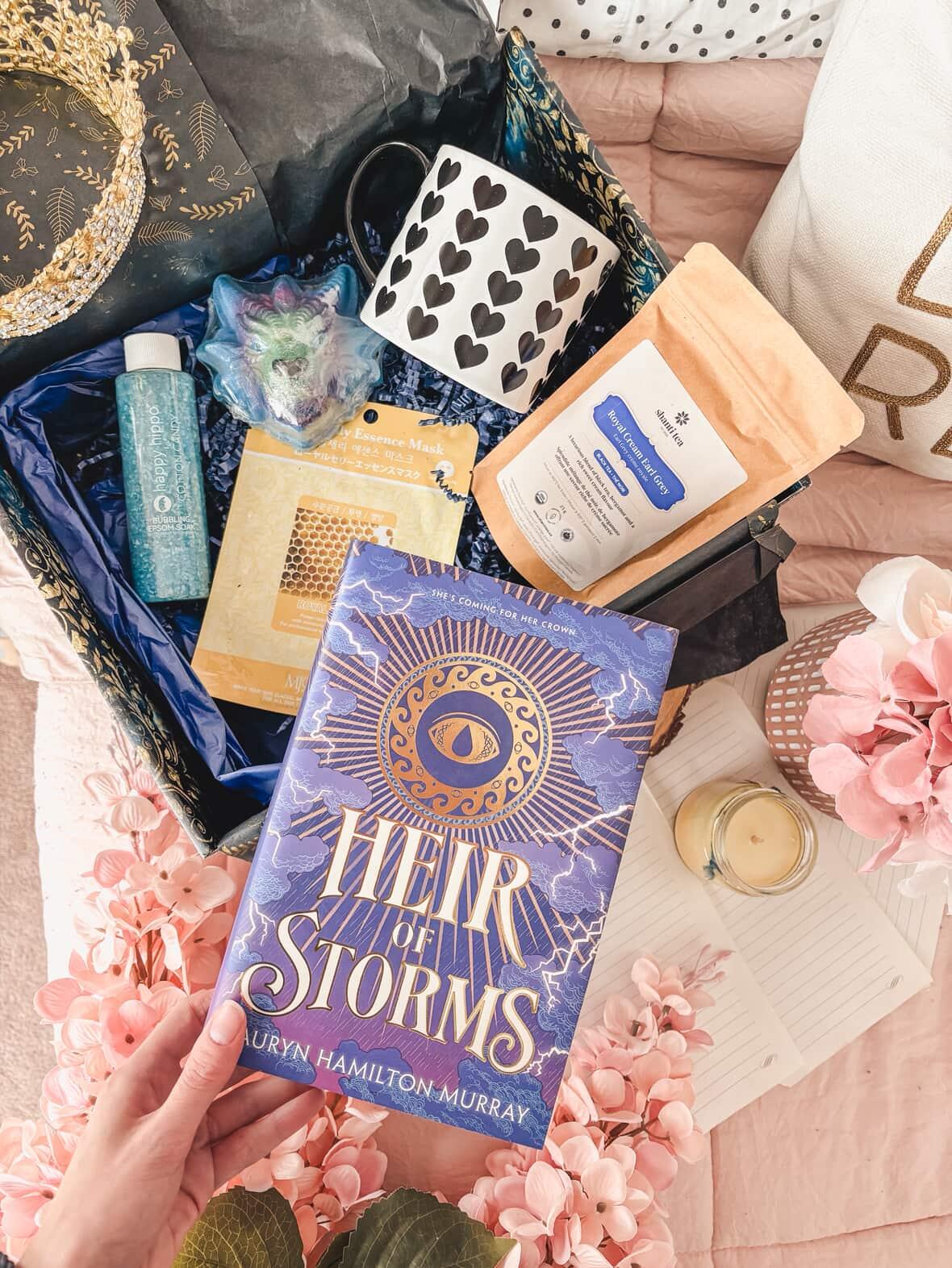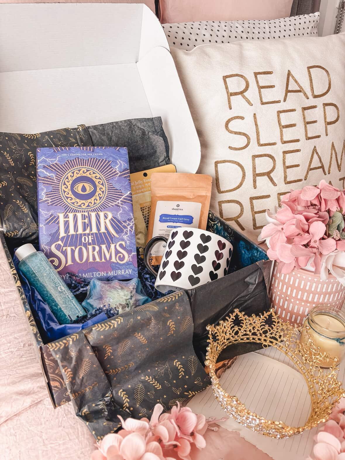 This box includes a hardcover Young Adult fantasy title with STENCILED edges, a signed bookplate, a foil design on the cover, along with 3 to 5 other items.
